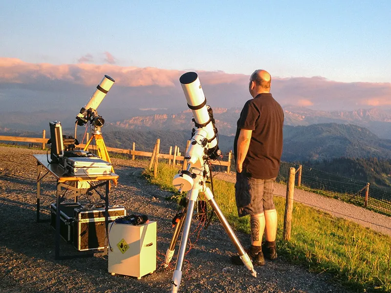 Lutz, Kurt, Johannes und Carsten sind am 07.08.2016 auf den Hochgrat um eine Beobachtungsnacht dort zu verbringen. Leichte Windboen und teilweise hohe Luftfeuchtigkeit habe die Astroaufnahmen leicht erschwert.